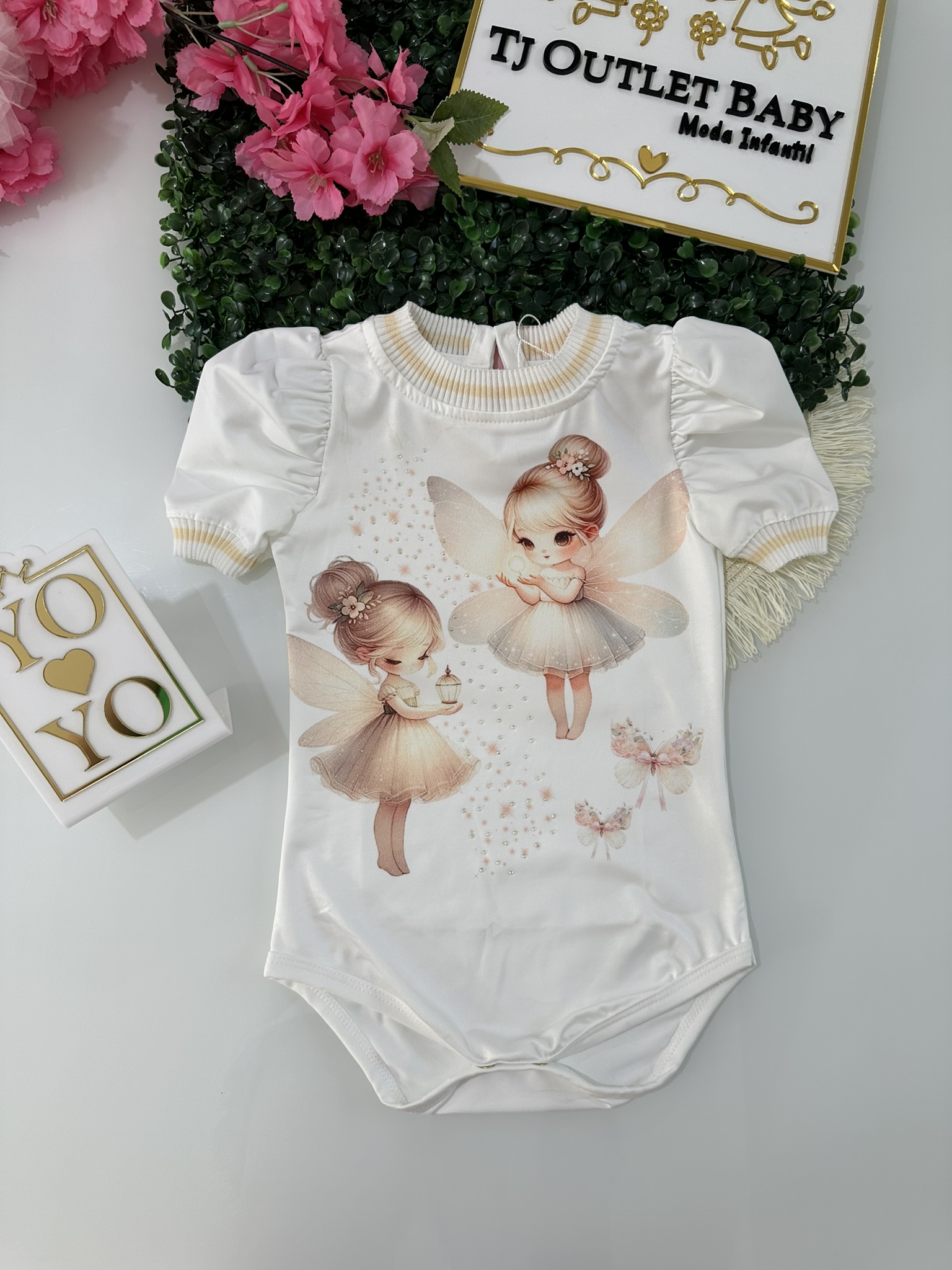 • Body, detalhes em pedrarias, estampa fada, mangas Bufantes, tecido poliéster com elastano.
