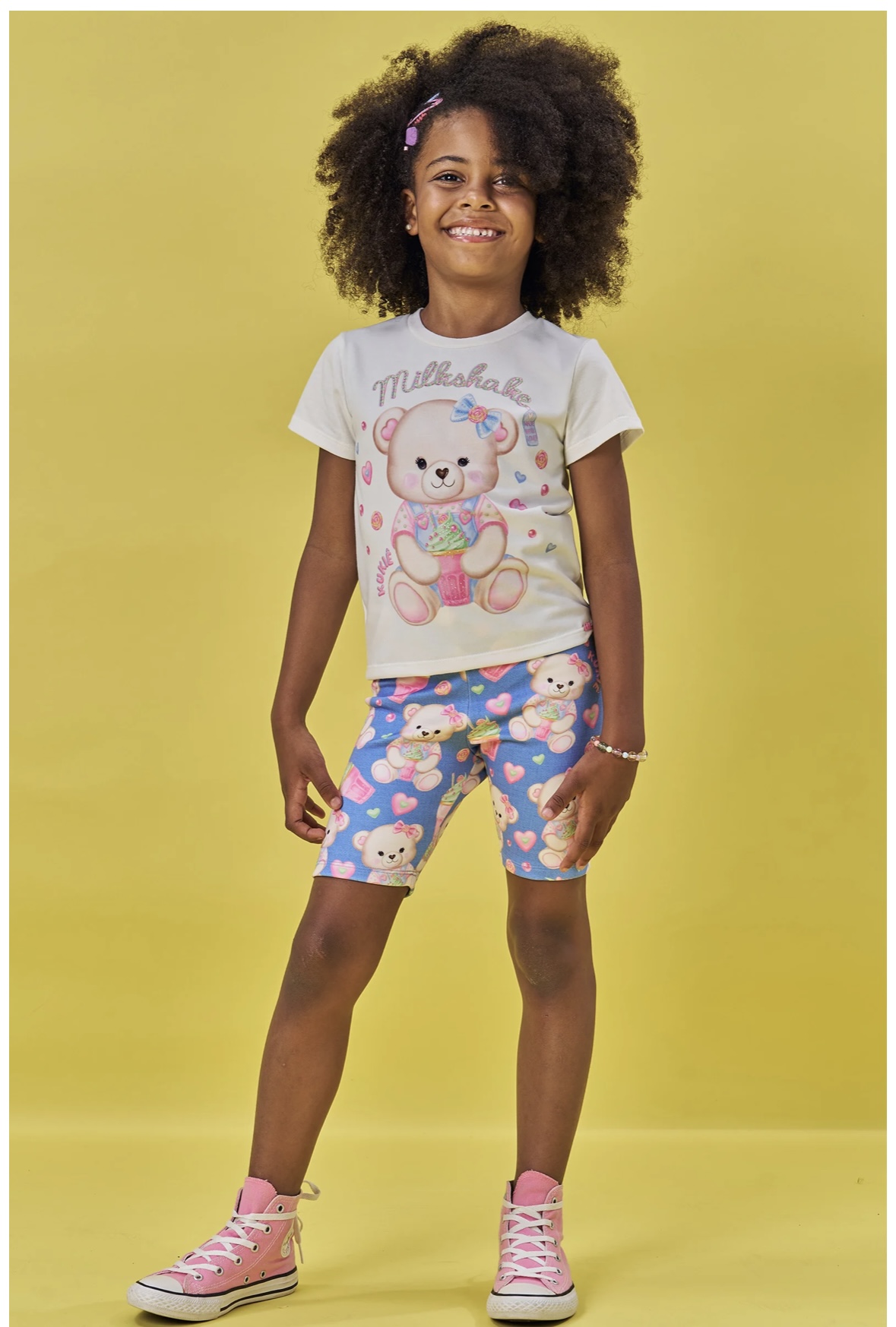 • Blusa detalhes em cristais, tecido algodão poliéster com elastano, shorts modelo biker, com elastico na cintura , tecido Poliéster com elastano.