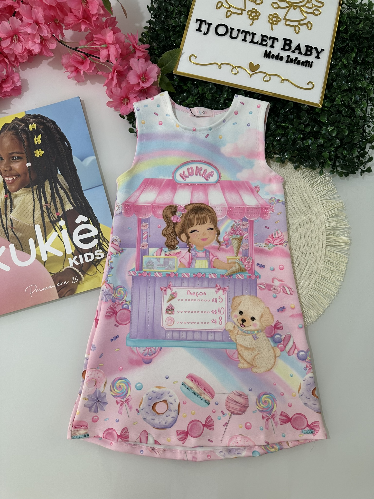 • Vestido regata, estampa barraquinha de doces , detalhes em strass, tecido poliéster com elastano.